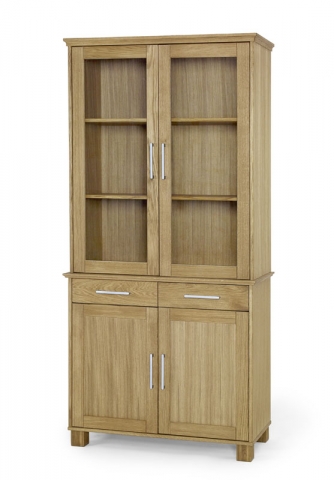 Lasiovet puukehyksellä. Yläosassa 2 kpl siirrettäviä, viilutettuja puuhyllyjä.